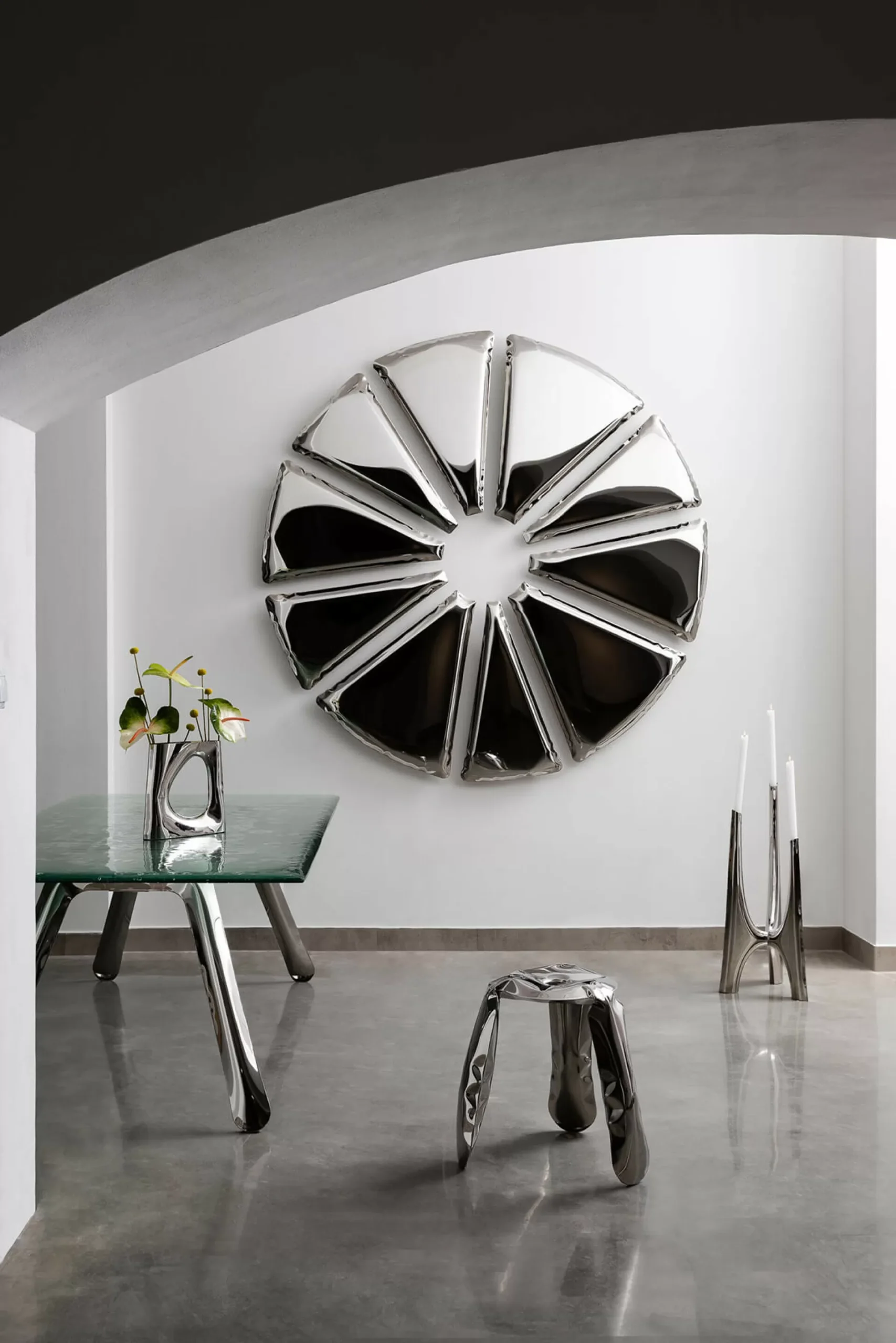 The PLOPP stool is an original, iconic object made in FiDU. It is a flagship of Zieta Studio and a symbol of Oskar Zięta’s research into the properties and possibilities of metal. The “Polish Air-Pumped Folk Object” proves how the artistic aspects of the design can be summarized in highly advanced engineering forms. Winner of the Red Dot Design Award 2008, the German Design Council Award 2008, and the Forum AID Award 2009. PLOPP is a manifesto of the FiDU technology and the “controlled loss of control” process. Two ultra-thin steel sheets are welded together around their edges and inflated under high pressure, deforming a 2.5D flat form into a 3D object.