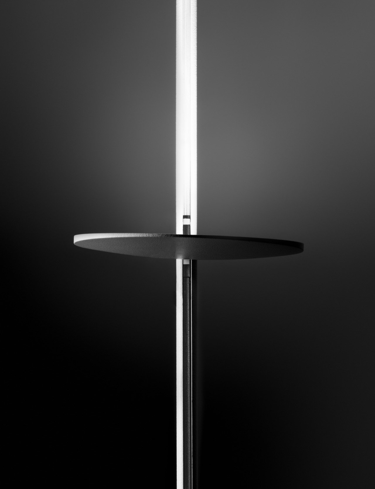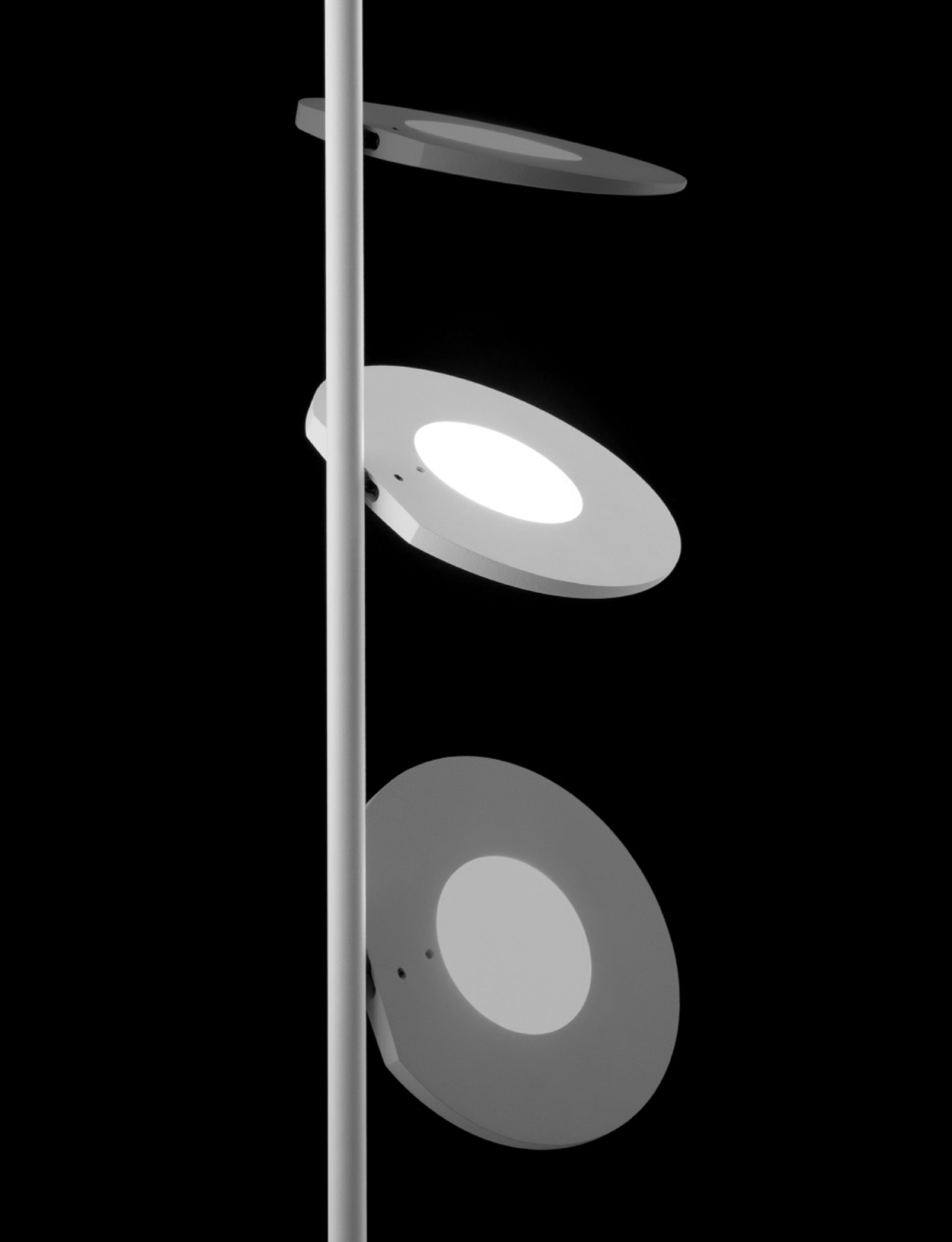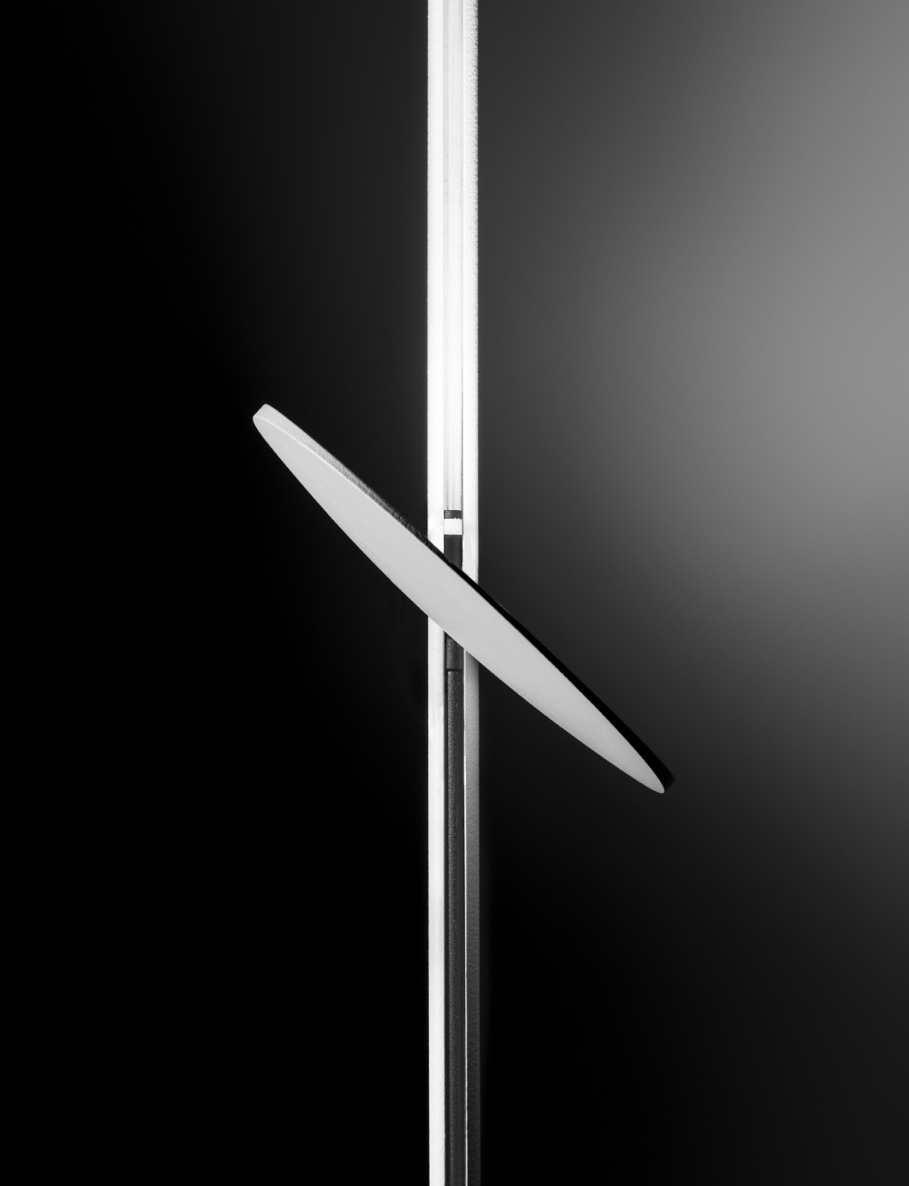 El disco de iluminación de Kimia se puede girar y mover libremente a lo largo de la parte superior de la barra, variando la dirección de la luz como se desee: hacia la pared o el techo para una luz ambiental o directa y funcional para una lectura relajante.